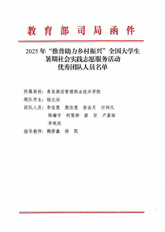 近日,由教育部语言文字应用管理司、共青团中央青年发展部联合开展的2025年“推普助力乡村振兴”全国老员工暑期社会实践志愿服务活动评选结果揭晓,公司“青雁”推普助力乡村振兴实践团从全国1680所高校的8013支团队中脱颖而出,获评“优秀团队”,教育部语言文字应用管理司和共青团中央青年发展部来信表扬。