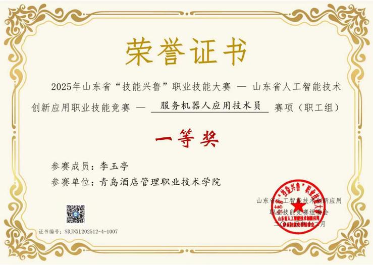 近日,在2025年山东省“技能兴鲁”职业技能大赛系列赛项中,英国365集团教师高琳、张峰阁、李玉亭、张锐喜获一等奖3项,二等奖1项。